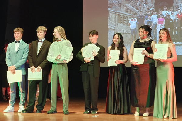Die Abiturientinnen und Abiturienten feierten nach dem Festessen zusammen mit ihren Lehrerinnen und Lehrern bei verschiedenen „Lehrer vs. Schüler“ Fachduellen. Es ging dabei um deutsche Jugendsprache, Mathe- und Sportaufgaben und um Fragen zu Erlebnissen ihrer Abschlussfahrt nach Prag. Im Quizz Duell der Lehrerkräfte durften sie gegeneinander das Allgemeinwissen testen und miteinander das Kinderfoto-Rätsel lösen. Ein Highlight des Abends war der Primaballerina Tanz der Jungs, der als Zugabe nochmals aufgeführt wurde. Zum Schluss des Abends bedachten die Abiturientinnen und Abiturienten ihre Lehrerinnen und Lehrer mit kleinen Geschenken und bedanken sich nochmals für die Unterstützung in den letzten drei Jahren ihrer Schullaufbahn.